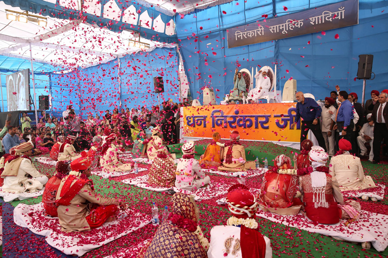 NewZNew (Chandigarh) : Sh. Mohinder Singh Ji, Sanyojak, Chandigarh Branch told that Thirteen couples tied their nuptial knot at a mass marriage ceremony organized by the Social Welfare Department of the Sant Nirankari Mission Delhi today. The mass marriages were organized in a simple ceremony held at Samagam Ground, Burari Road. While His Holiness Baba Hardev Singh Ji Maharaj and Pujya Mata Sawinder Ji blessed the couples, thousands of devotees including the parents, friends and relatives of the brides and bridegrooms, attended the ceremony.