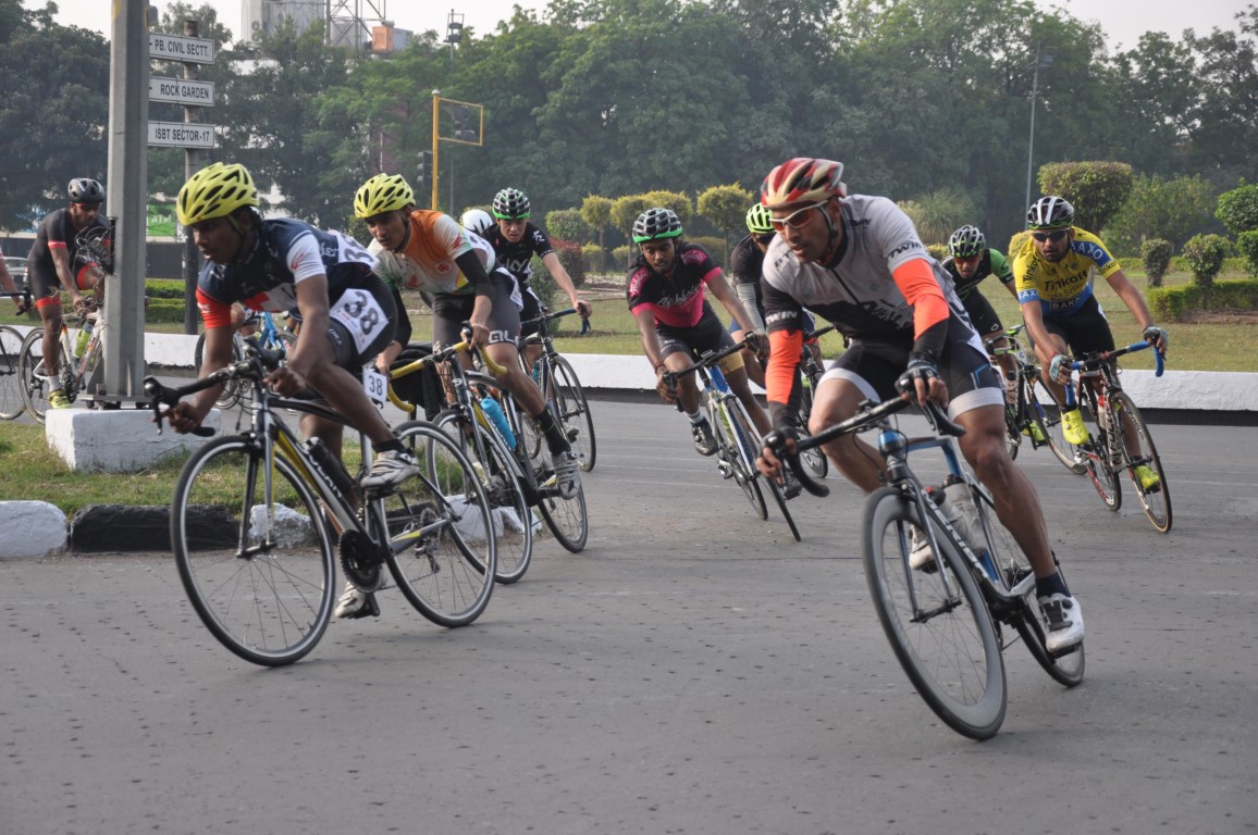 In the pro race, a total of 45 kms were covered by the cyclists. This distance included 15 laps of the garland route between matka chowk and the sec 16 cricket stadium rotary. Manjit Singh of Indian Air Force won with 26 points, second was B Mugesh with 16 points and third position went to Anil Manglaw from Haryana who scored 14 points.