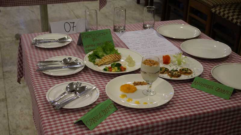 The day started with the Chef Competition where the students had to prepare a three course menu comprising of a starter, a main course and a dessert. A total of eight teams participated in the event. The dishes prepared by the participants were judged by “Mr. Sanjeev Verma” a renowned Chef of the tricity and Mr. C.M Bhan Principal Chitkara School of Hospitality, on various aspects like taste, presentation, appearance etc. Mouth watering dishes such as Tuna Salad, Chicken Roulad with Rosemary, Tropical Torta and Tuna Cakes with Anchovy (tuna patties with Nut Salad) were displayed by the competitors. It was quite evident that the participants had put in their best efforts and were appreciated by the judges as well as the faculty members of the institute. The winners were as follows: