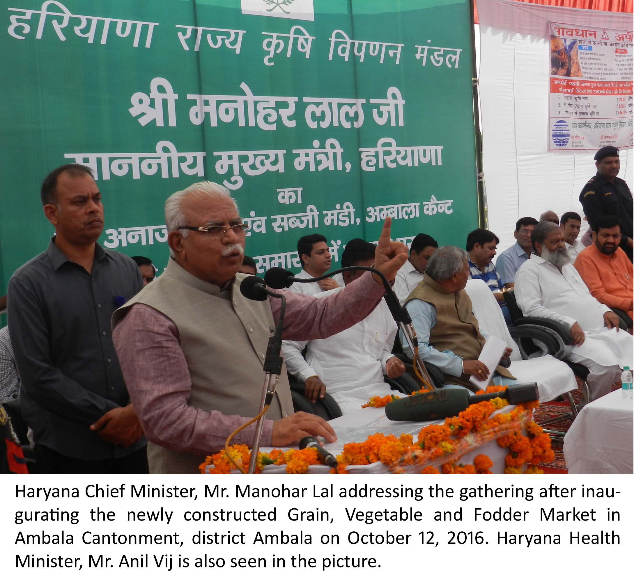 Chandigarh, Oct 12 – The market has been set up by Haryana State Agricultural Marketing Board on over 32 acres of area at a cost of Rs 26.57 crore. The new market has 121 shops and booths in Grain Market, 81 shops and booths in Vegetable Market and seven shops and booths in Fodder Market along with common platform, individual platform, parking, toilets, retailer shed and other necessary facilities.