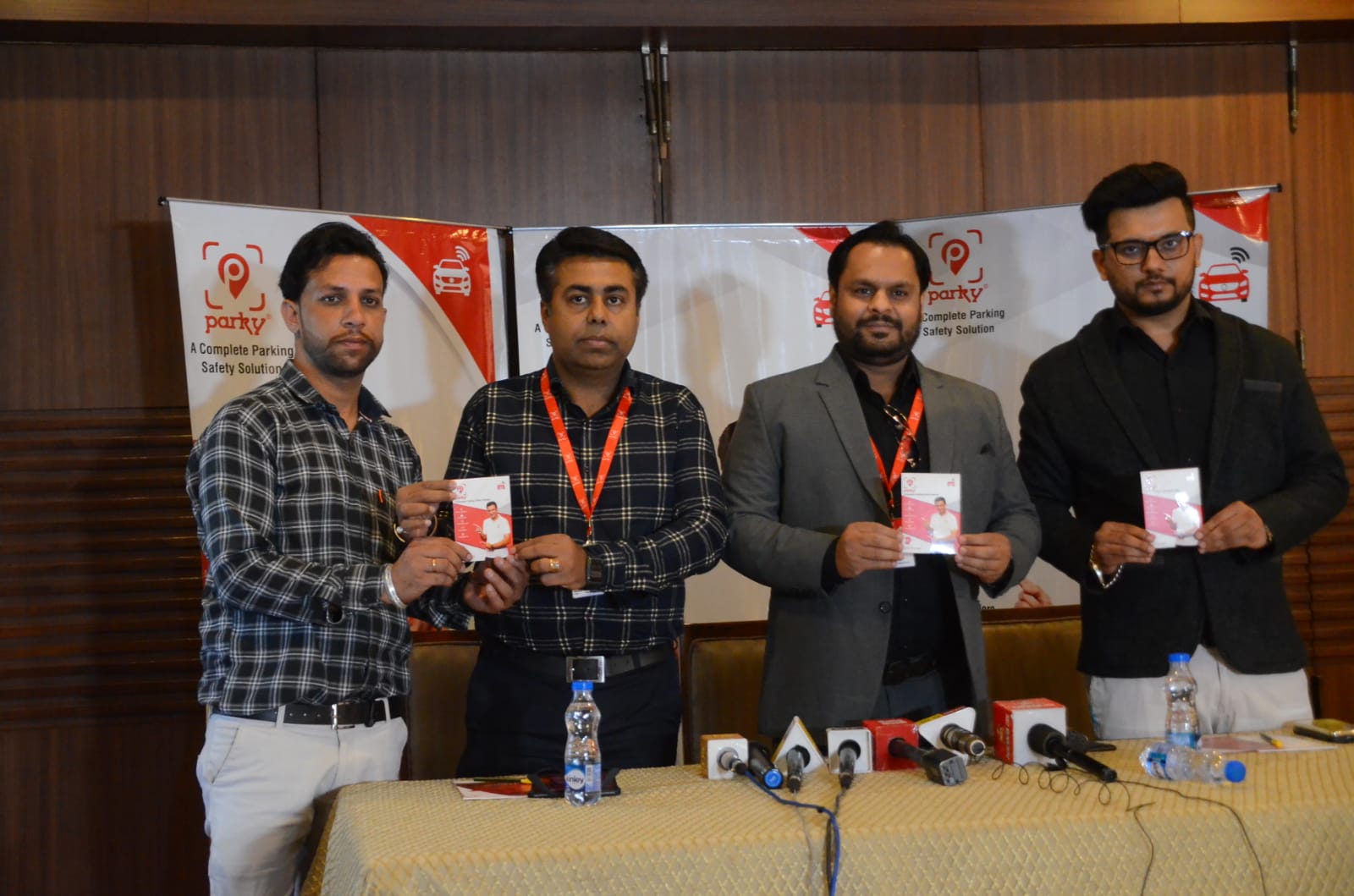 Directors of Parky Atul Jain and Varun Nitin Bhalla * and Directors of eParking Solutions Sandeep Sharma and Shagir Ahmed, operators of Parky App in Tricity * while talking to reporters in a press conference today told that the person can access the QR code on the vehicle from his phone.