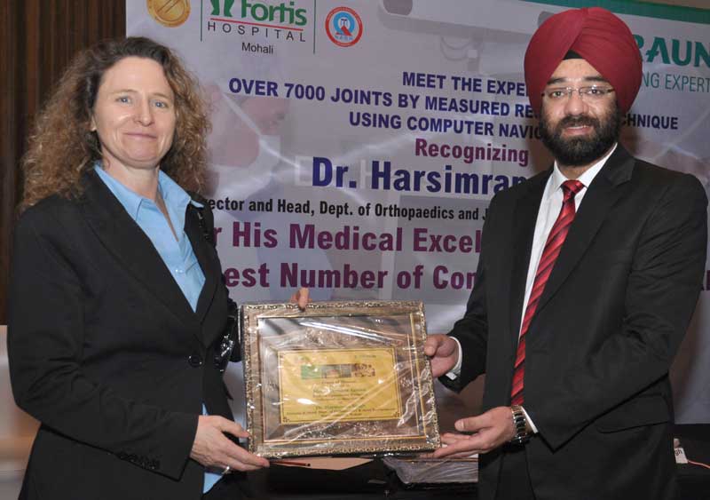 Dr Harsimran has been conferred international honor by Bbraun’s Dr Med Hartmerth Kiefer, Director of Clinic for Traumatology and Orthopedic Surgery Lukas-Hospital Bunder Germany and Mrs Barbara Giese, Director