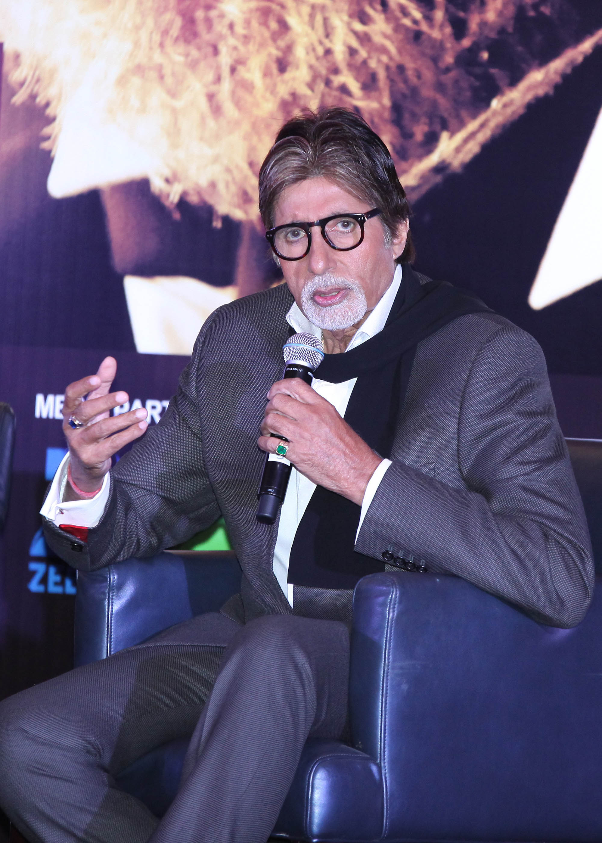 Amitabh Bachchan was in Dubai to promote his new film Shamitabh. Accompanied by the Tamil star Dhanush and debutante Akshara Haasan, the daughter of veteran actor Kamal Haasan, the 72-year-old superstar looked dapper in a crisp white shirt and grey suit with a scarf about his neck. Talking about the film, which tells the story of a wannabe star who becomes famous by imitating Bachchan’s legendary voice, Bachchan said he was impressed by Dhanush’s dedication to his craft and the way he managed to take on his voice without losing sight of the character. “We dubbed three times for this film, whose plot is the first of its kind in Hindi cinema,” explained Bachchan. “It was important to match facial expressions to dialogue.”