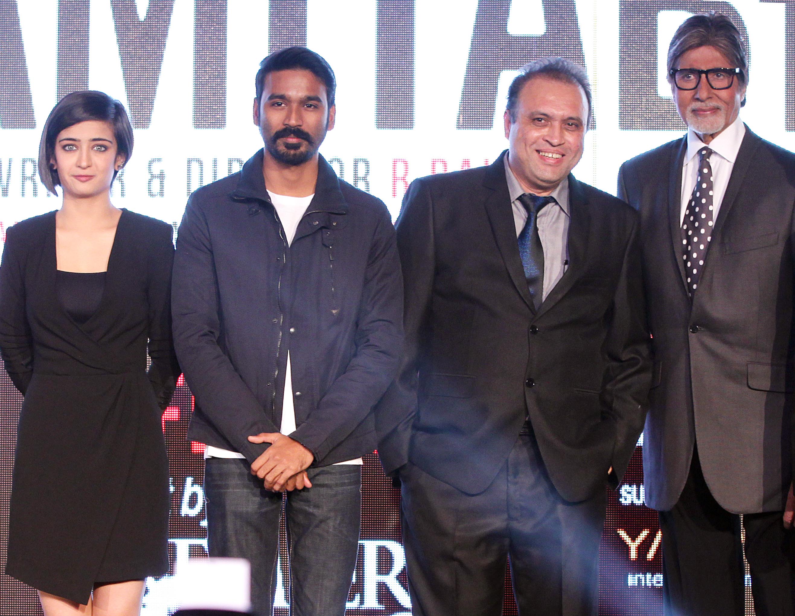 Dhanush, for whom this is the second Hindi film, laughed when asked about his progress with learning Hindi. “It’s much better than it used to be,” he said, referring to Ranjhanaa, his debut Hindi film. “I used to have to memories all the dialogues!” Haasan, casual in skinny jeans and black shirt, said it was a privilege to share screen space with Bachchan and Dhanush.