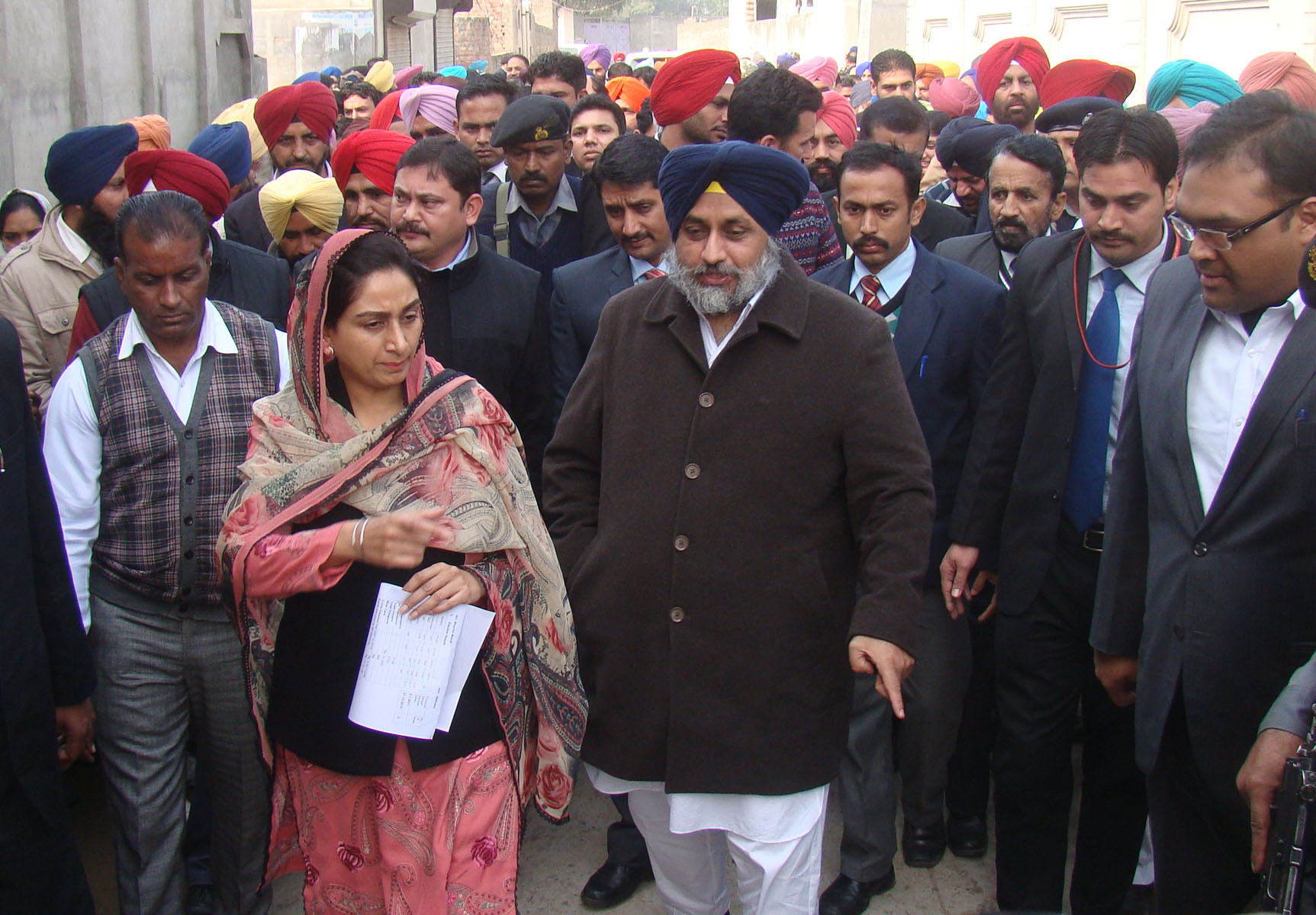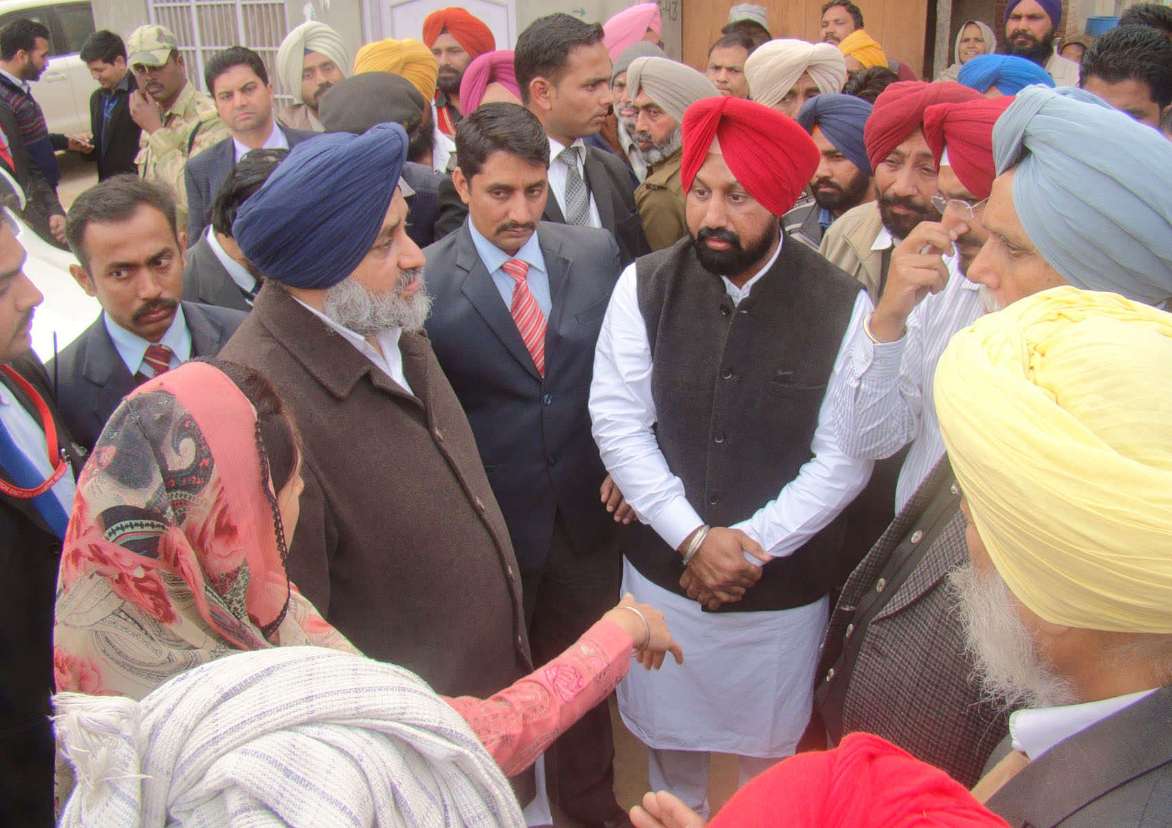 The deputy CM Mr Sukhbir Singh Badal and Union Minister Mrs Harsimrat Kaur Badal today inspected development works of laying drinking water pipes and concrete cement floored roads in notified area committees of Nathana, Rampura, Mandi Kalan, Balianwali and Chauke.