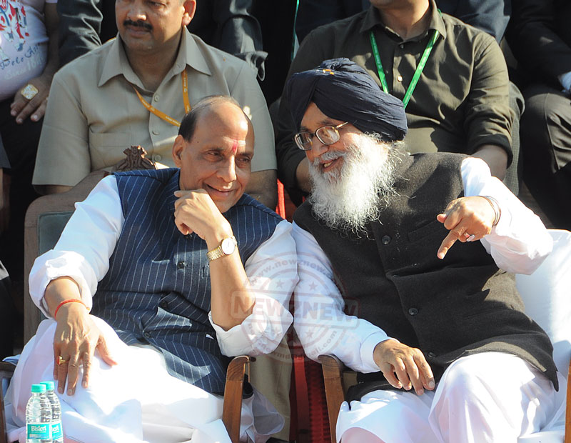 In his address the Chief Minster thanked Mr. Raj Nath Singh for his maiden visit after becoming country’s Home Minister and urged him to spare entire day to redress the grievances the people of border areas adding he said these peoples were leading a tough life and were the real patriots. Highly impressed by the performance of the BSF women and Tata Steels Adventure Sports Foundation Stone for the successful culmination of BSF Golden Jubilee All Women BORDER- Safari 2015 on camel back, Mr Badal announced a cash price award of Rs. one lac each to 27 such participants and thus gave away a cheque of Rs. 27 lac . He also raised the issue of installing full truck scanner at ICP Attari to facilitate hastle free trade and also handed over a letter to Mr. Raj Nath Singh in this regard, citing ‘the volume of trade through integrated check post at Attari has been increasing every day. The traders have been facing difficulties due to lack of full truck scanner at ICP, Attari. Absence of this facility is not only slowing down the trade movement, but also at time runs the risk of not detecting illicit cargo. Intallation of full truck scanner will resolve both the issues’.