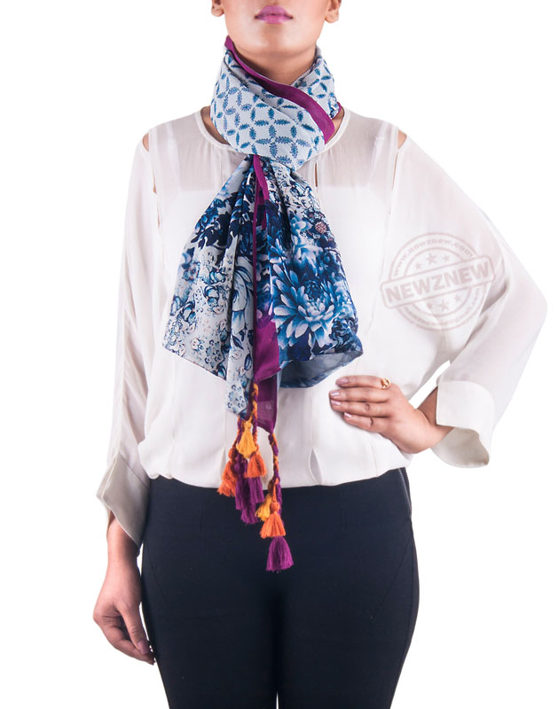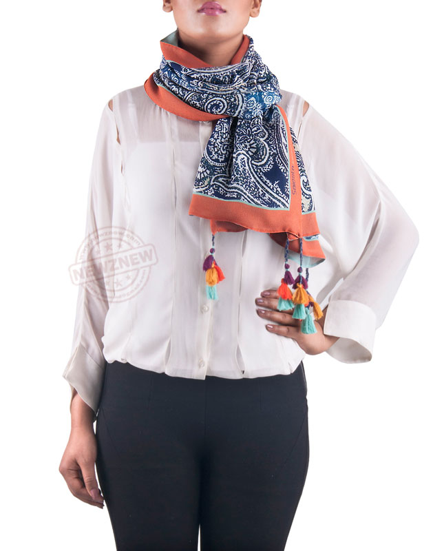 Made out of pure Viscose Georgette fabric, the scarves are extremely soft in use and flow smoothly. The reversible scarves have an array of colors, targeted to suit the taste of a vast audience. If they display a variety of vibrant hues, their intricate designs and patterns make them unique. The scarves have digital prints inspired from different cultures and traditions from across the globe. The references have been drawn from Turkish tiles and textiles, Chinese blue pottery, Japanese shibori, tapestry weaving, kalamkari, gypsy mirror work from ancient Kutch, batik, and French paisleys.